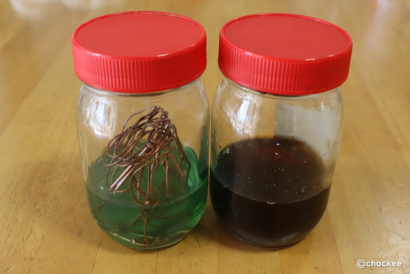《後媒染》自作の鉄媒染液、銅媒染液 「染色用『鉄媒染液・銅媒染液』を作ってみた」