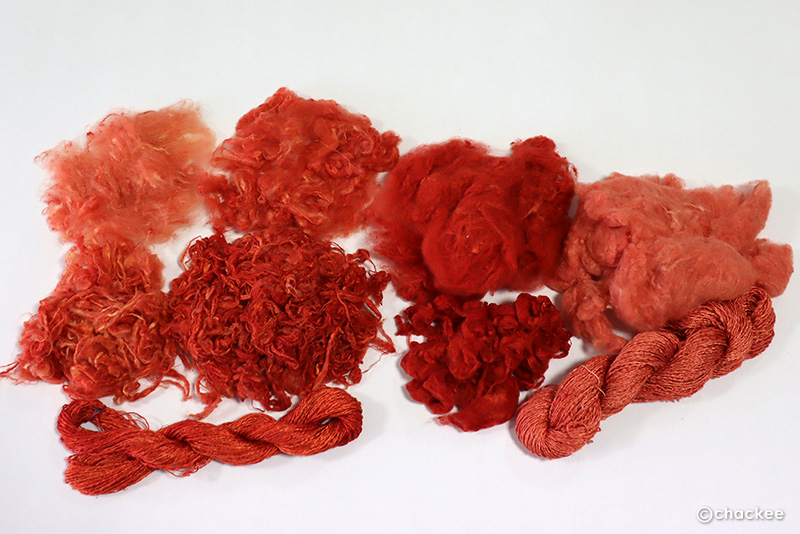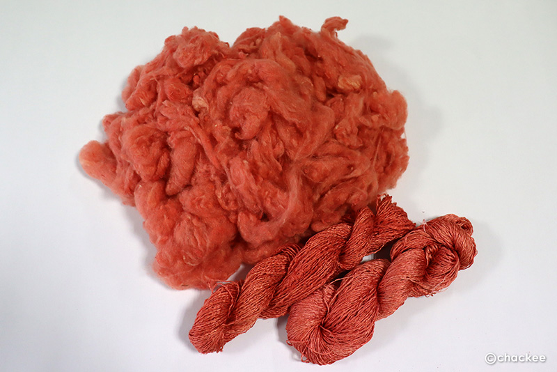 繭(マユ)の毛羽(ケバ)の『インド茜の根』染め
