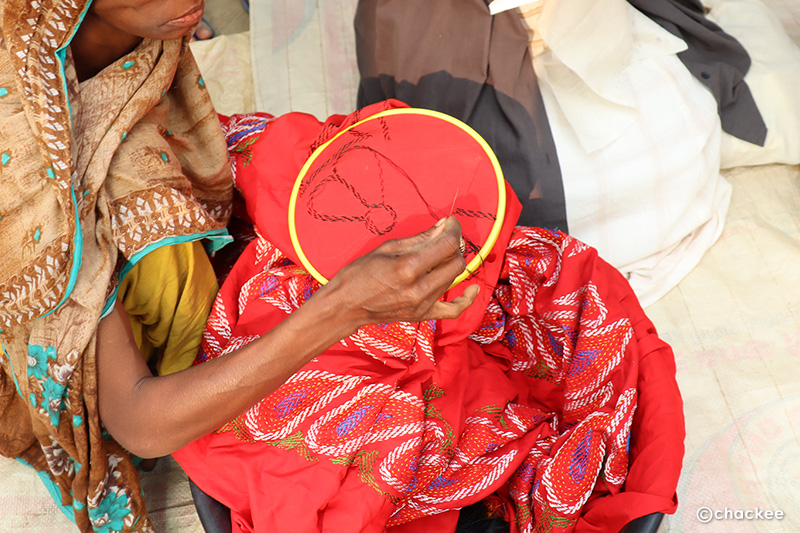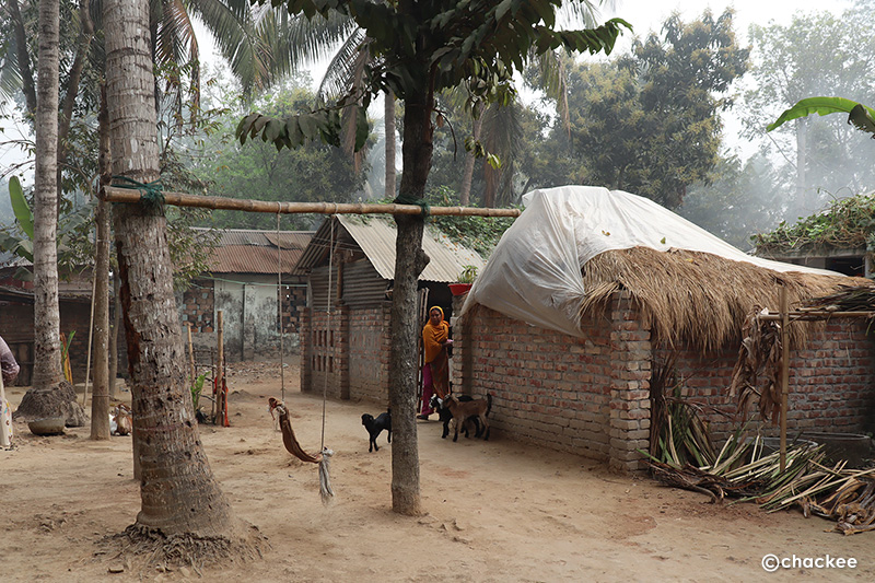今回の旅行本来の目的である『ノクシカタ』の刺繍が施されている布の入手と村の女性たちと一緒にワークショップ交流をするための訪問のはじまりです。最初はジョソール (Jashore) から少し西へ行ったジッコルガサ (Jhikorgacha) という村です。