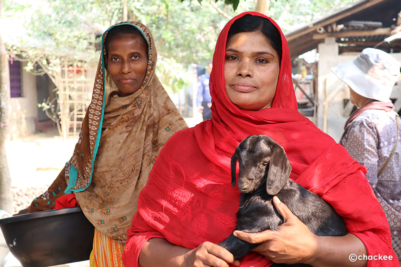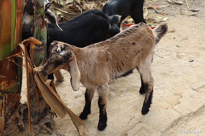 指導してくれた女性。赤ちゃんの山羊を抱いて「写真を撮って欲しい」とお願いされた