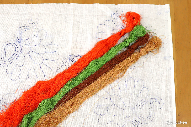 4色の糸をいただいた。刺繍糸ではないので光沢はあるが極細
