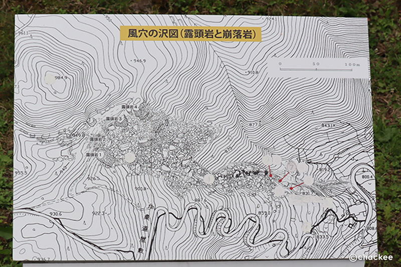 風穴周辺の平面図(等高線)パネル