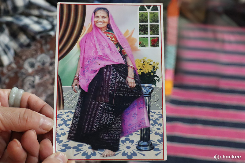 数日前の大雨により近くの橋が落ちてしまったそうで車体幅ギリギリに急遽盛り土で造った道で川を渡っての訪問となりました。今回もまた国家褒章を受けたジャハさんの織り工房です。