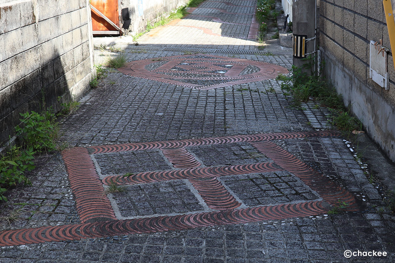 街中の路地は絣を思わせる幾何学模様が施されてかなりキレイに整備されていた。