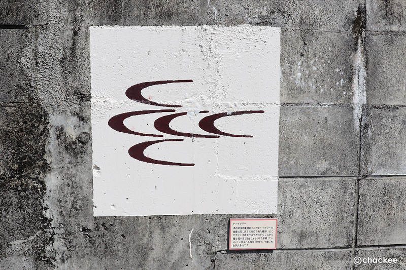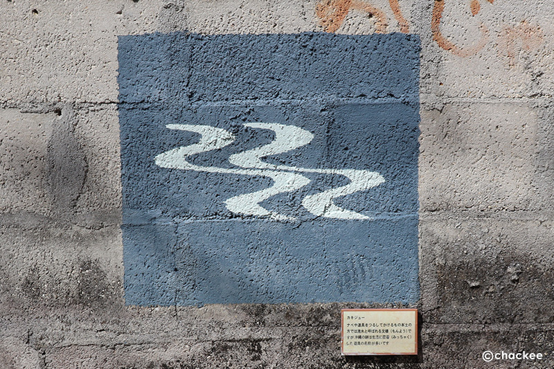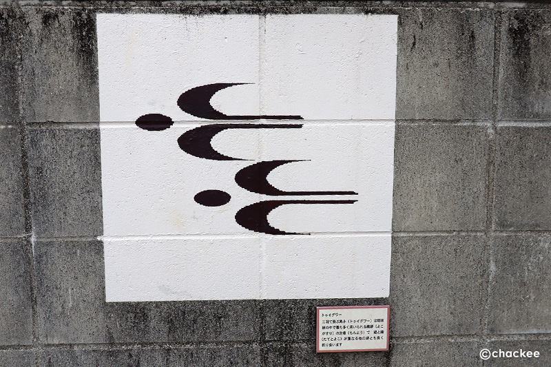 ところどころブロック塀に絣の柄が描かれていた。これもトゥイグァー(鳥柄)