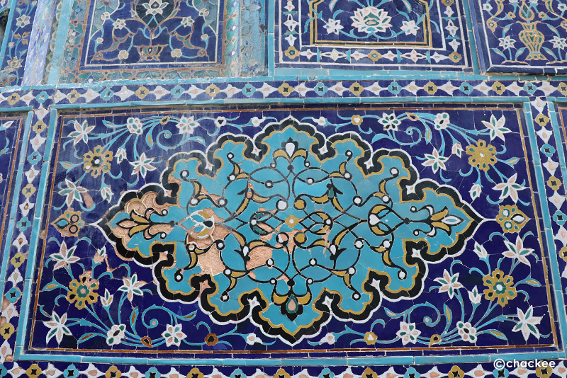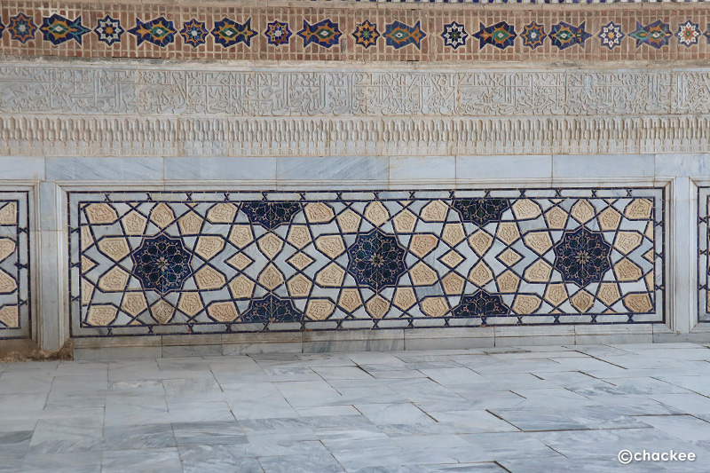 死者を祀る霊廟とわかっていてもブルーのタイルのアラベスク文様で覆われたイスラム建築は引き込まれる魅力を醸し出しています。