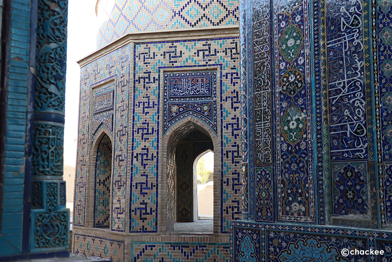 9世紀から15世紀に建てられた霊廟の集合地。青いサマルカンドの建築物の象徴のようなエリア。