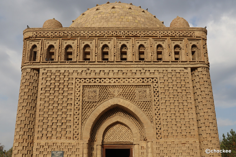 9世紀末に中央アジアに成立したサーマーン朝の王族が眠っています。13世紀のモンゴル帝国の襲来の際にブハラの多く建造物が破壊されましたが、この廟は砂の中に埋もれていたためにモンゴル軍による破壊を免れたようです。1926年にソ連の考古学者のビャトキンによって発掘されるまで気づかなかったそうで、かなり保存状態がよく原型が残っています。