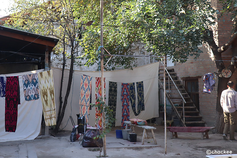 都市であるフェルガナで一泊、次の日は朝からマルギランの「ハン・アトラス」の工房『Marg’ulon Ikat Silk』を訪ねます。
