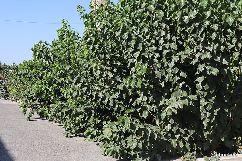 コーカンドからフェルガナへ向かう街道の両脇はクワの木で並木のようになっていました。クワの木の多くは軒を越えるほどの高木に育っていますが、葉は青々していてこの周辺では養蚕が行なわれている地域だと実感しました。