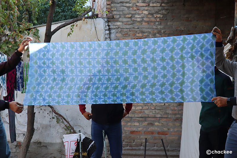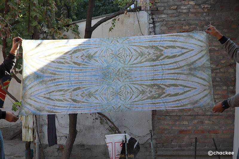3~4人かでパフォーマンス染めをしていたので、他の人の絞り作品