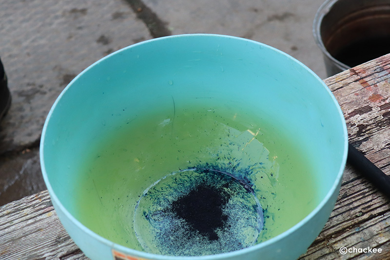 青はインディゴ。粉末の染料をお湯で溶いて使用
